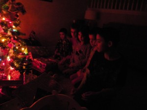 There is magic here too, it’s just a different kind. It’s the warm, lazy glow of contentment that spreads out from my children and washes backwards over me – because there is healing in parenthood. The hurts from the past are healed by wet 2-year-old kisses, enthusiastic 4-year-old hugs, and the head of a teenager laid upon my shoulder. They are God’s great gift to me ever year at Christmas, and I ask for nothing more. This morning, as they sat near the gifts by the tree (waiting for the frenzy to begin,) I saw in the glow of the Christmas lights that I had everything I’d ever dared to hope for – the family I thought I’d lost in the middle of it all has been given back to me in the most amazing ways. Children, friends, “adopted” parents, husband…all of it….breathtaking and wonderful.